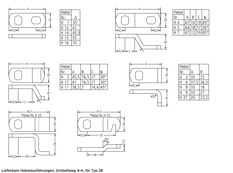 - Bei Hebelzylindern mit einer anderen Hebelausführung als die Standardvariante (H16) handelt es sich um eine Sonderanfertigung.